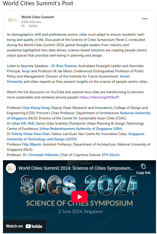 Project presentation by Dr Felicity Chan at the Science of Cities Symposium of the World Cities Summit 2024: https://youtu.be/slKZ4aLrEfw?si=Bmpa2hvkpFDzBvnm&t=3518